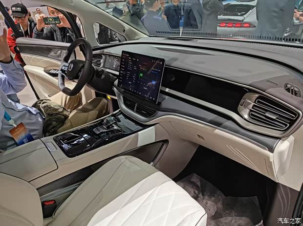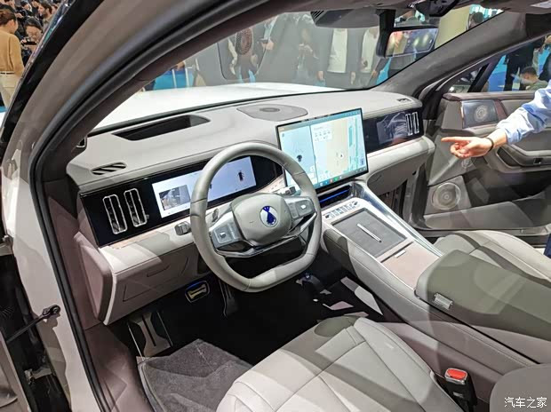 内饰采用星链环抱式座舱,50英寸AR-HUD+15.6英寸2.5K旋转屏+双10.25英寸电子后视镜,五屏联动;二排零重力云绒座椅、吸顶屏、全隔断座舱;全系标配天神之眼5.0,3激光雷达+12摄像头,覆盖高速/城区NOA、代客泊车。