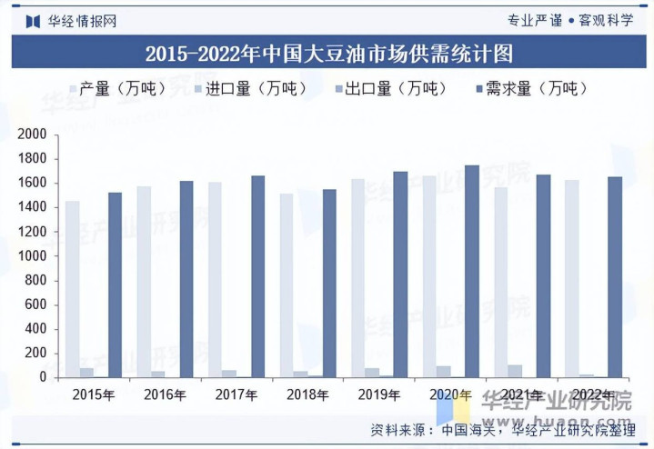 可能很多人会觉得,我国每年需要大量进口大豆,所以大豆油的产量也不高。可实际上,我国是世界上大豆油产量最高的国家,每年的大豆油产量超过了1800万吨。