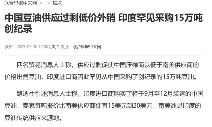 其实,国与国之间,生意是生意,争议是争议,并不是像网友想象中的老死不相往来。再者说,印度突然觉得我国的大豆油便宜,所以就买了,没有外界想象的那么复杂。